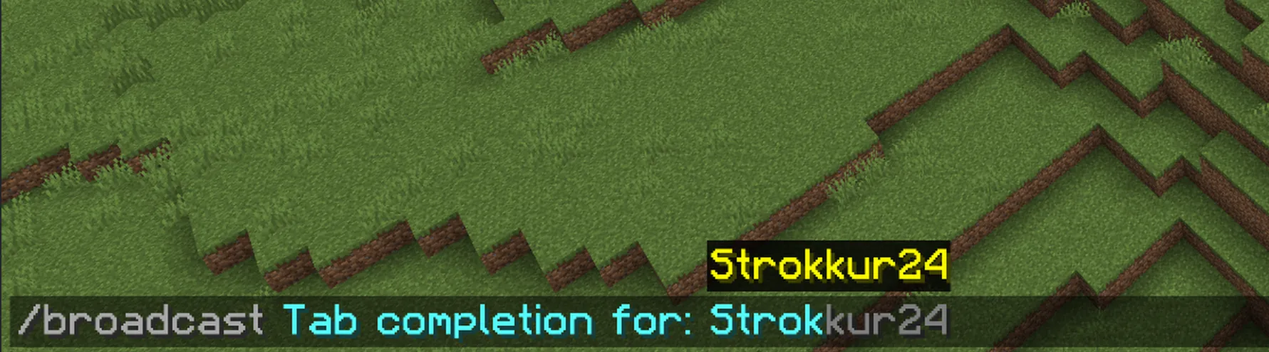 Section titled “Adding suggestions”Our broadcast command works pretty well, but it is lacking on suggestions. A very common kind of suggestion for text based commands are player names. In order to suggest player names, we can just map all online players to their name, like this: